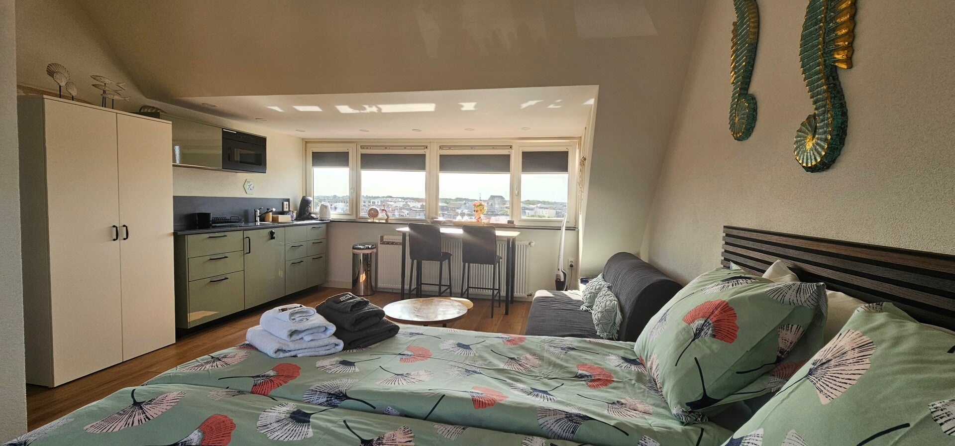 De Studio bevindt zich op de 2e etage, met een prachtig uitzicht over het hele dorp tot aan de kennemer duinen.